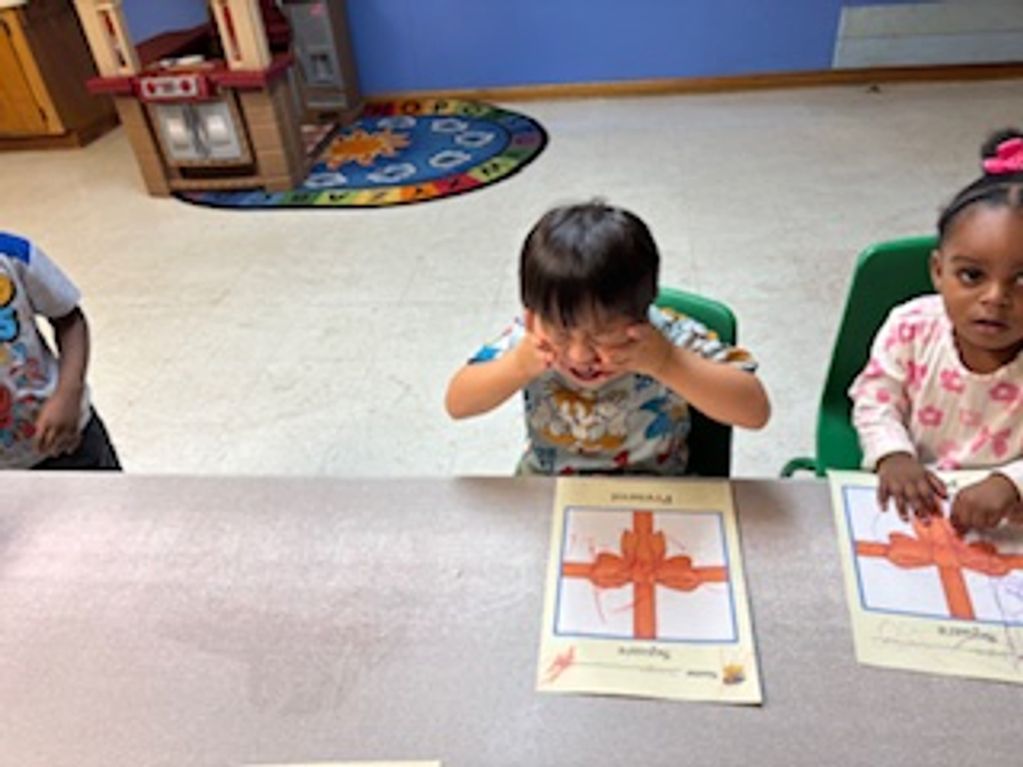 Having fun with our table toys. Learning to build things
